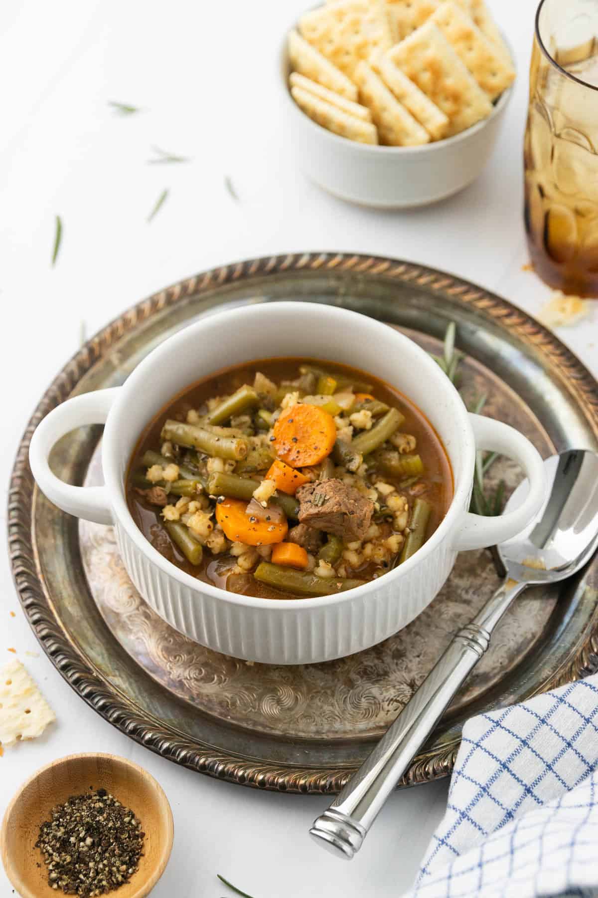 - Top your bowl of beef and barley soup with your favorite crackers, a sprinkle of cheese like parmesan, or a dash of hot sauce for some heat.